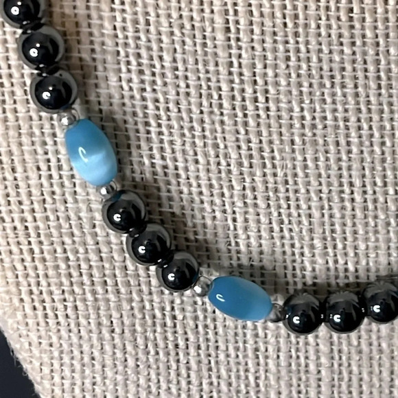 Hematite and Blue Glass Beaded Vintage 90s Necklace
