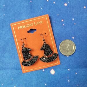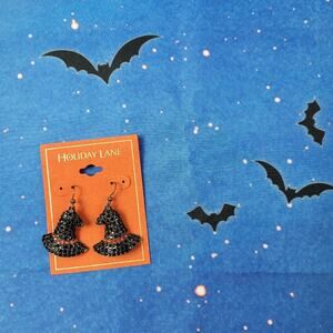 Faceted orange and black crystals dress up the creepy theme of these Charter Club witch hat drop earrings