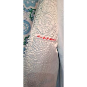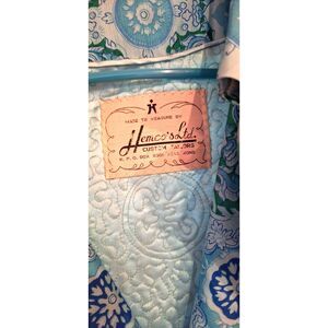 The inside liner is a light blue color that is machine quilted down the inside and around the yoke. There is a name embroidered on the inside in red thread, it was common when an item was made to have the owners name sewn inside.