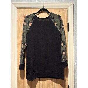 Hemish USA Tunic Sweatshirt Womens Large Black Tunic Leopard Print Camo Pullover