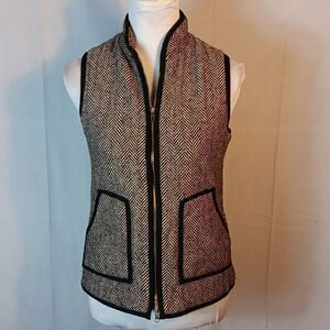 This black and white herringbone wool blend full zip Hemline Mom Vest is a size Small with a pit to pit measuring 17" and a length of 22". Two front pockets and fully lined. In excellent condition. All offers are welcome.