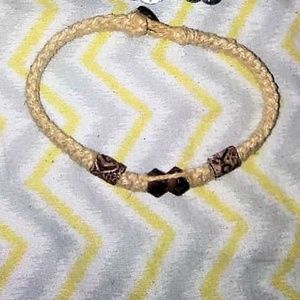 2 hemp anklets with button closer. One with peace sign dangles and one with 3 beads. Hand made by yours truly.