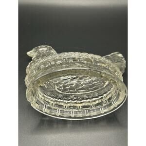 Hen On Nest Hollow Candy Holder Clear Vintage Country Farmhouse