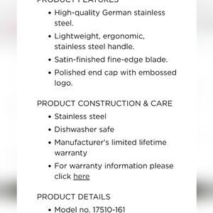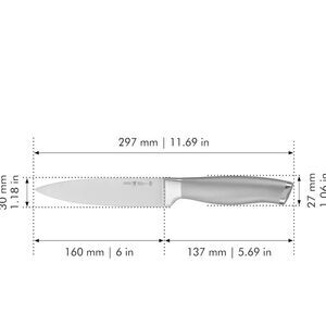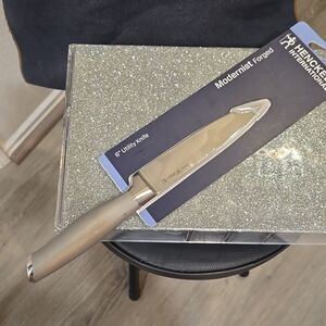 Sleek stainless steel chef's knife. Perfect for precision cutting.