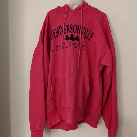 Medium Women's Pink with Blue Writing Hendersonville NC Hoodie... has pockets!!!