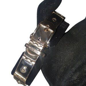 Hendi Bendal Hinge Belt Buckle Bracelet MOP Signature Logo Gold Tone Rhinestone
