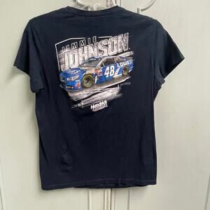 Great condition womens size Large short sleeve navy graphic tee with Jimmie Johnson graphics on the front and back