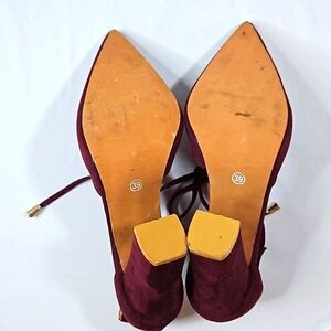 Hengsong Purple Wrap Around Strap Suede Block Women's Heels Sz 39