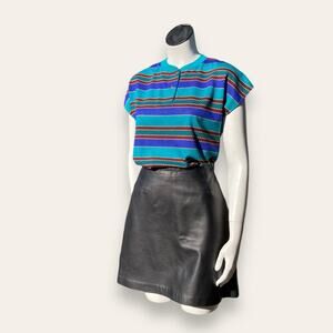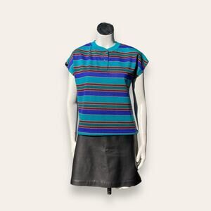 Cheryl Tiegs 1980s Cool Colored Blue, Green striped dolman sleeve blouse