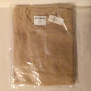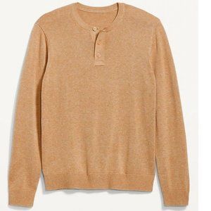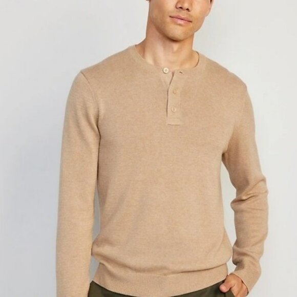 Henley Sweater: (3) Button. Crewneck. Long Sleeve. Cotton Blend. Tan
