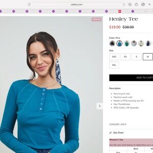 Udel (modest wear) brand "Henley tee" in size medium, color teal. New with tags, not even out of the original packaging.