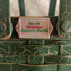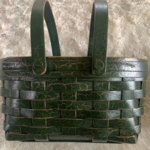 Henn Workshops Wooden Basket Green Crackled Christmas Keepsake Handles Hand Crafted