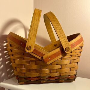 Henn Workshops Woven Wooden Basket w/Handles Hand Crafted Vintage