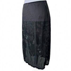 Henna Black Sheer Embroidered Mesh Skirt Size M