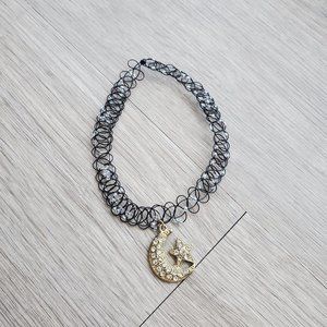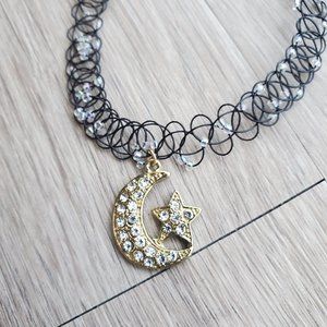 Henna Tattoo choker necklace with gold rhinestone moon and star