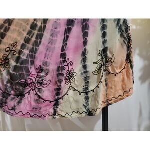 Henna VTG Embroidered Tie Dye Twirl Midi Dress Womens One Size Hippie Festival