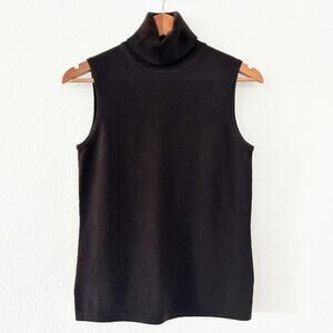 Henri Bendel 100% Cashmere Brown Turtleneck Sleeveless Knit Top Sz. Medium