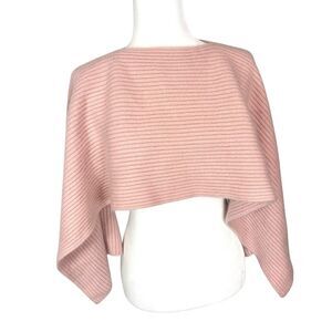 Henri Bendel 100% Cashmere Poncho Womens Blush Pink Ribbed Shawl T-Cape Scarf