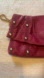 Chic leather clutch in a rich berry hue. Features gold stud accents. Perfect for evening outings.