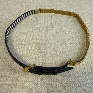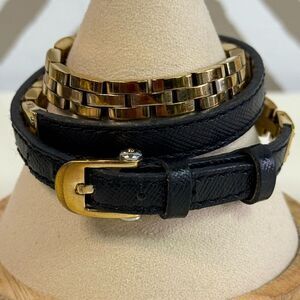Henri Bendel Black Leather & Gold Chain Link Wrap Bracelet