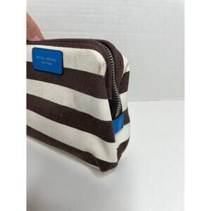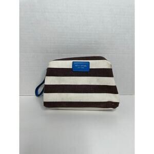 Henri Bendel Cosmetic Bag Brown White Stripe Blue Strap