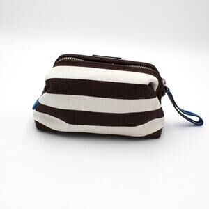 Henri Bendel Cosmetic Bag Brown White Striped Canvas Zip Pouch Travel Makeup