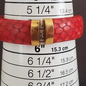 Henri Bendel Cuff Bracelet Red Snakeskin Double Hinged with Crystals Gold Plated