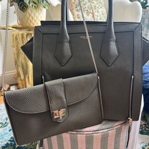 Henri Bendel Dark Green/Gray Rivington Leather Tote