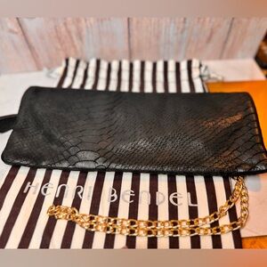 Henri Bendel Elegant Black Snake-Embossed Clutch w aftermarket chain EUC