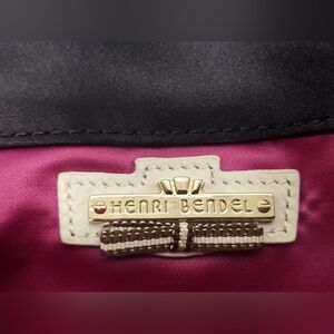 Henri Bendel Feather Embellished Black Satin Evening Bag
