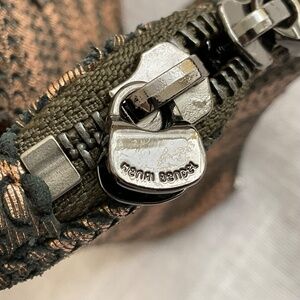Henri Bendel, Animal print fabric, fold over wristlet,clutch.Gunmetal hardware.Main zip closure compartment .Front compartmant with magnetic snap closure.Pink satin lining.