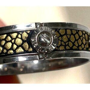 Beautiful Henri Bendel hinged bracelet with a striking gold and black snake pattern with silver-tone accents and engraved logo details. Henri Bendel jewelry is no longer in production, making these bangles even more special. Good vintage condition, as a vintage piece, it may show wear consistent with age. Please see photos for more details.