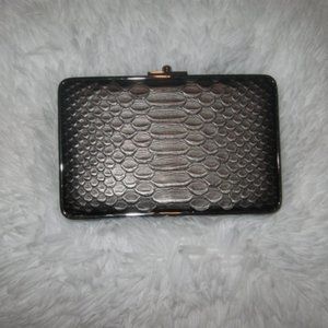 Henri Bendel Gray & Metallic Leather Rectangle Python Party Starter Bag