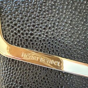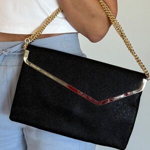 Henri Bendel Leather Clutch Black with Gold Trim and Chain