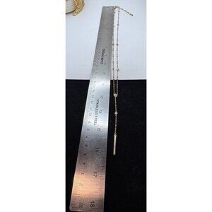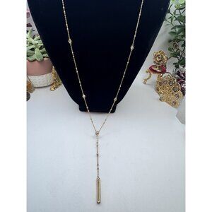 Pretty Henri Bendel necklace is a long gold tone piece featuring Swarovski crystal accents.