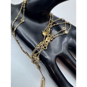 Henri Bendel Long Gold Tone And Swarovski Crystal Signed Necklace Adjustable