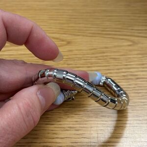 This elegant bracelet features a stunning combination of silver and moonstone beads, perfect for adding a touch of sophistication to any outfit. Signed Henri Bendel New York. Like new! I don’t think it’s been worn. Just beautiful! 7” wrist but has stretch.