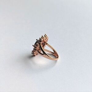Henri Bendel Onyx Style Sunburst Halo CZ Baguette Art Deco Rose Gold Ring- sz 6½