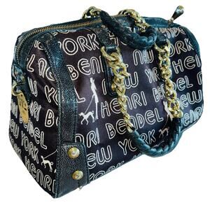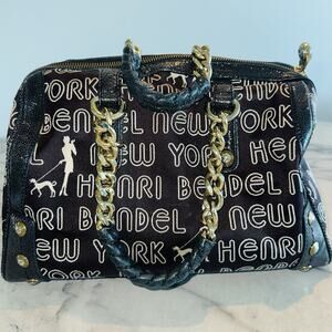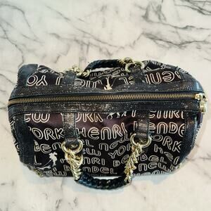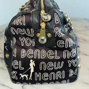 Henri Bendel Signature Brown Logo Speedy Satchel Large Handbag 13"x7x8 Gold