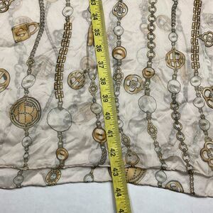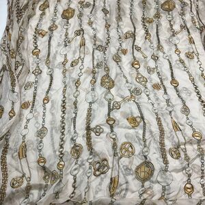 Henri Bendel Silk Scarf Chain Baroque Print Beige Regal Designer Luxe Wrap 86x35