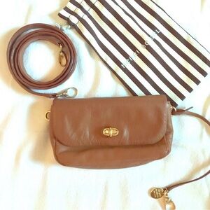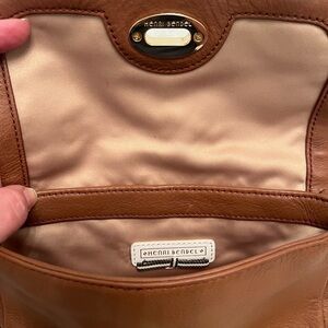 Elegant tan leather shoulder bag by Henri Bendel. Features a sleek design with a secure clasp. Perfect for daily use.