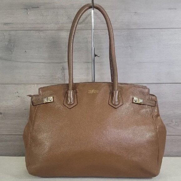 Henri Bendel Taupe Brown Pebbled Handbag Tote Purse Satchel