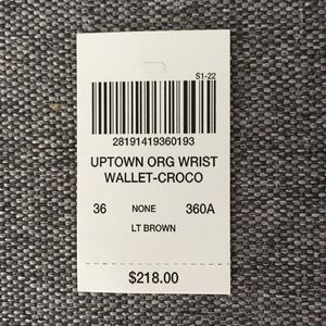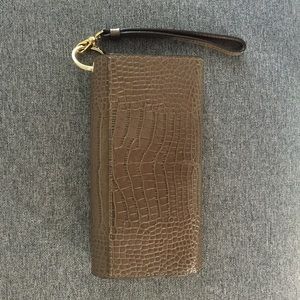 Fits all the necessities... phone, lipstick, cards, change, cash! Color is Light Brown with Gold Accents. Material is Crocodile Leather. Item comes with dust bag and is new with Tags. Originally $218. Feel free to ask questions or make an offer!