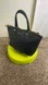 The bag is made of saffiano leather, It features a zippered closure, two top handles, and a removable crossbody strap, The interior has a zippered pocket and two open pouches. Look at handles, not really noticeable.