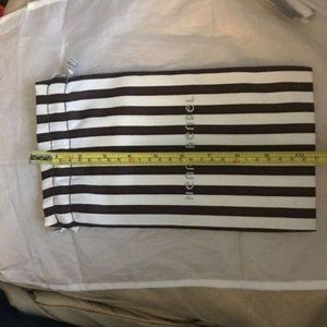Classic striping white and Brown with ribbon ties and silver metallic writing.