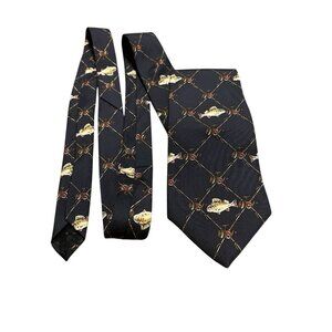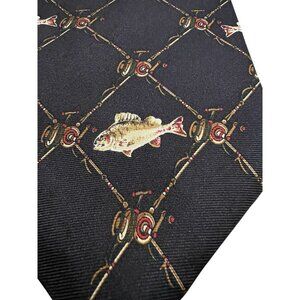 Henri Christian 100% Silk Men's Tie Fish Fishing Pole Graphic Print