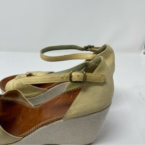 Henri Cuir for Barney’s New York Vintage leather platform ankle strap sandals 39. Baby yellow and off white leather platform. Peep toe . 100% genuine leather . One of a kind shoe