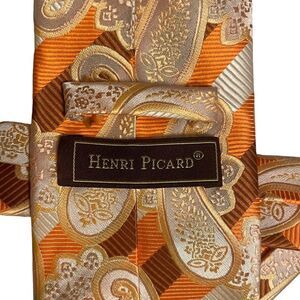 Henri Picard Orange Striped Paisley Big & Tall Extra Long Tie
