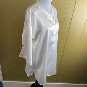 Henri Pierre women L V-cut button front satin Longsleeve nightgown white