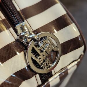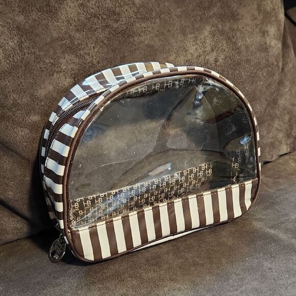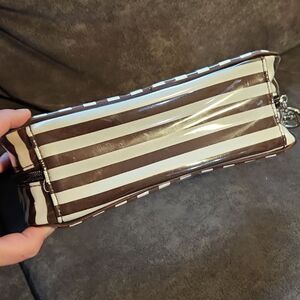 Henri Bendel Brown and White Striped Clear Cosmetic Bag